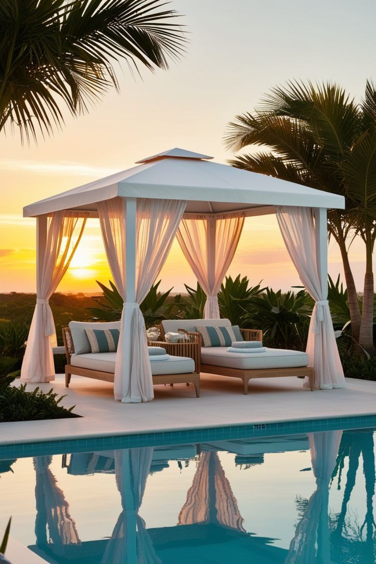 Built with durable, premium-grade materials and refined design sensibilities, each cabana creates a serene, shaded environment for relaxation, conversation, or outdoor dining — with custom finishes to match your aesthetic vision.
